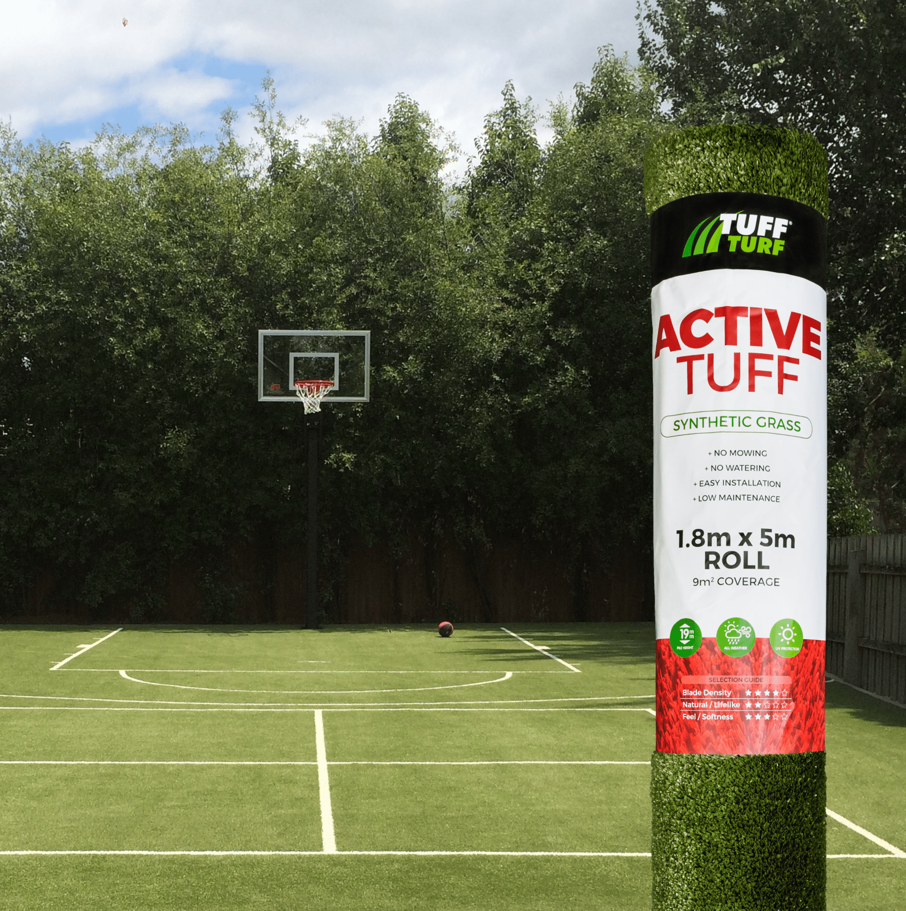 • Premium high-performance surface • Extremely hard-wearing • No mowing or watering saving time and money • Low-maintenance and stays green all year-round • Suitable for sports surfaces and high traffic areas • Pet and child-friendly
